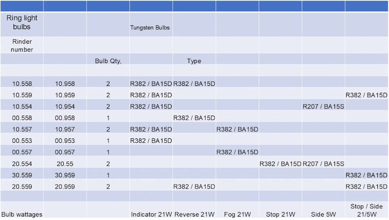 Rinder Rear Lights 952 - 959 and 552 - 559 on the lenses are only Generic Numbers, You MUST choose the number associated with the lights below.